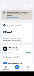 Diferente de outros apps, o AttaPoll é famoso por seus pagamentos instantâneos. Na maioria das vezes, o valor cai na sua conta PayPal em poucos minutos após o pedido de resgate.